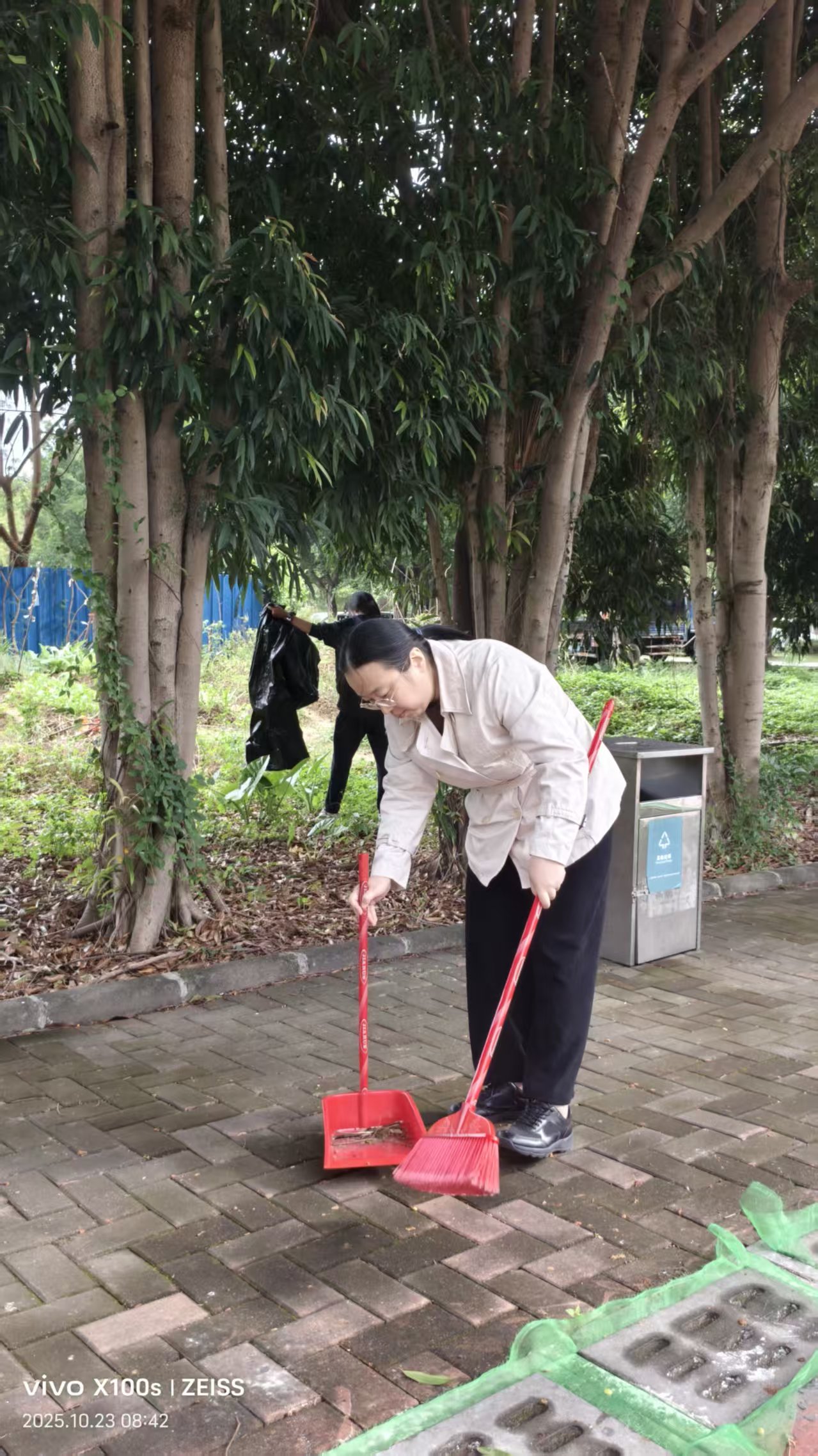 会后,在丘志君书记、张玲院长、祝佳副院长等带领下,全院教工、学生党员以及部分学生代表前往学校划定的责任区开展爱国卫生运动,对校园环境展开了全面清理工作,尤其针对排水沟、花盆托盘、闲置容器等容易积水的地方进行了重点清理。