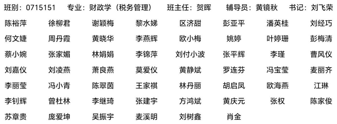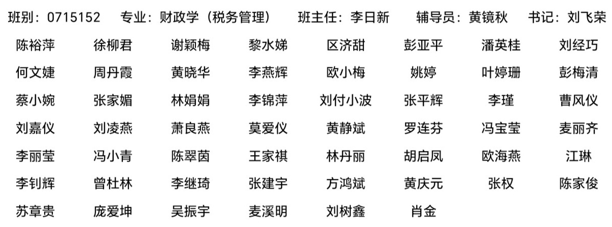 太阳集团2138网址2007级财政学(税务管理)专业校友名录