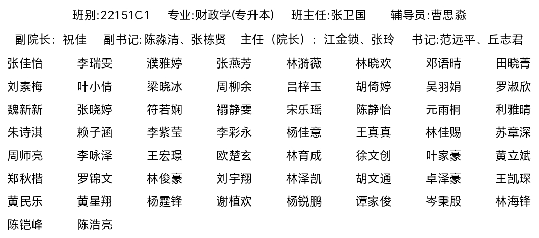 太阳集团2138网址2022级财政学(专升本)专业校友名录
